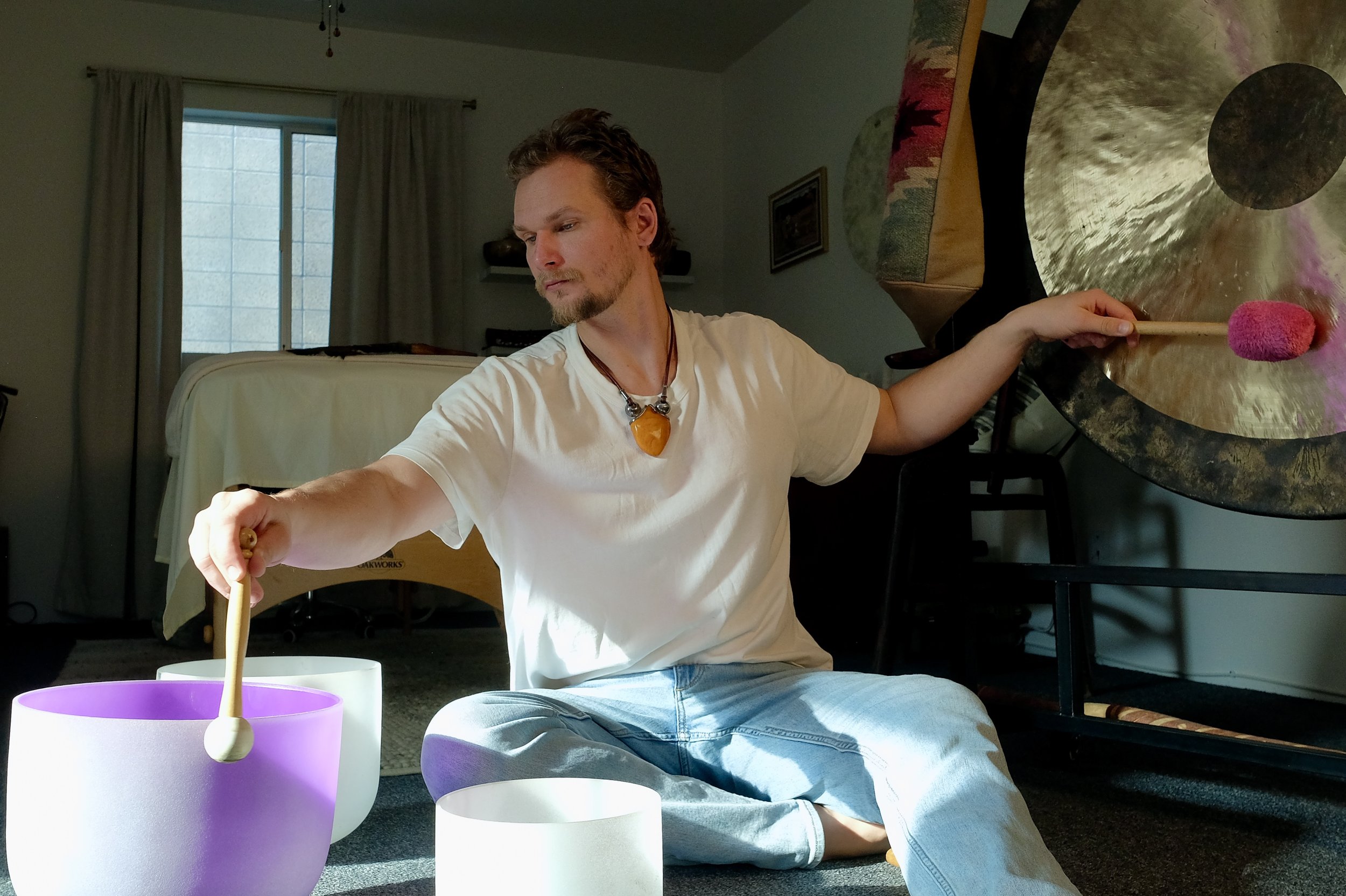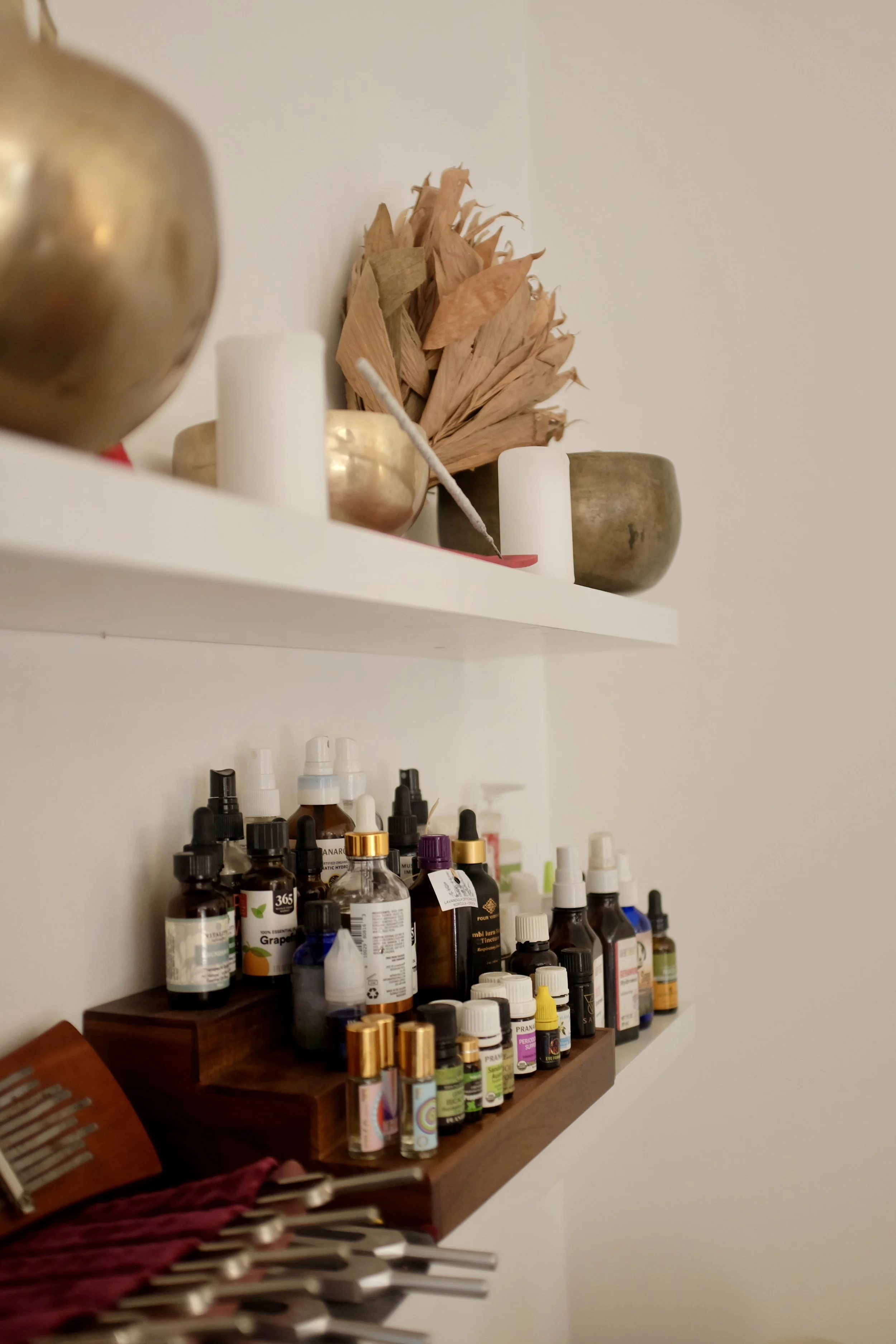 Depending on what is needed, sessions may include breathwork to calm the nervous system, hands-on bodywork to support circulation and relaxation, sound work using bowls or tuning forks, and aromatherapy to support grounding or ease.